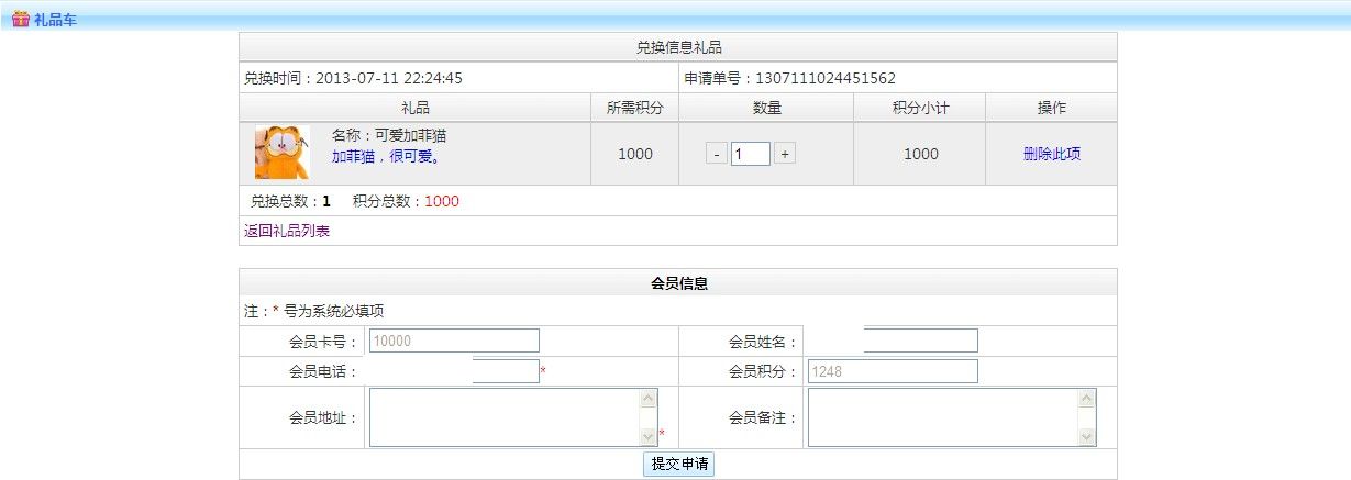 :會(huì)員自助兌換禮品扣除積分